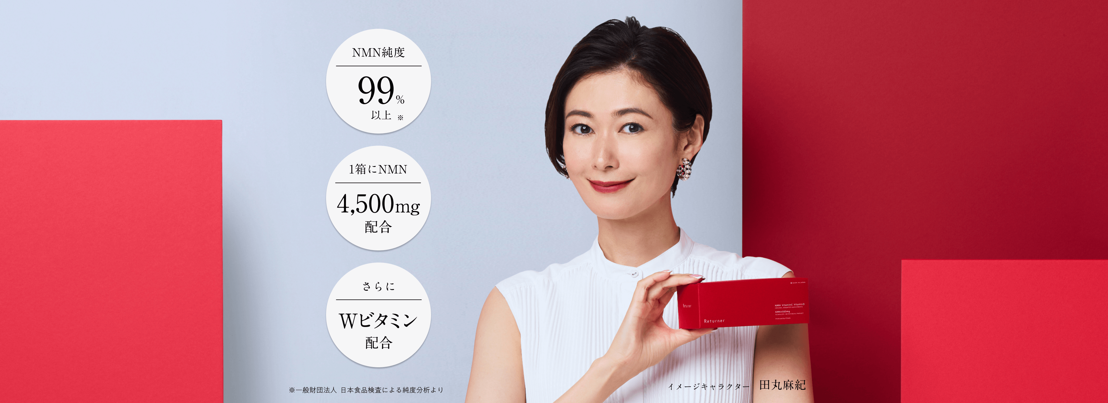 99%以上の高純度と1箱4,500mgの高配合。本物を求める方に向けたNMNです。